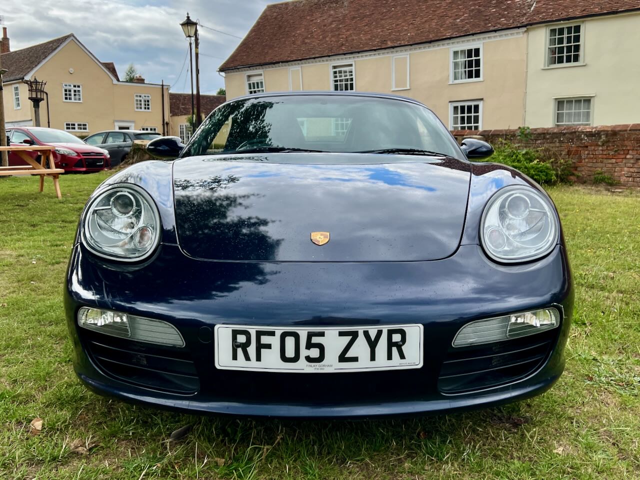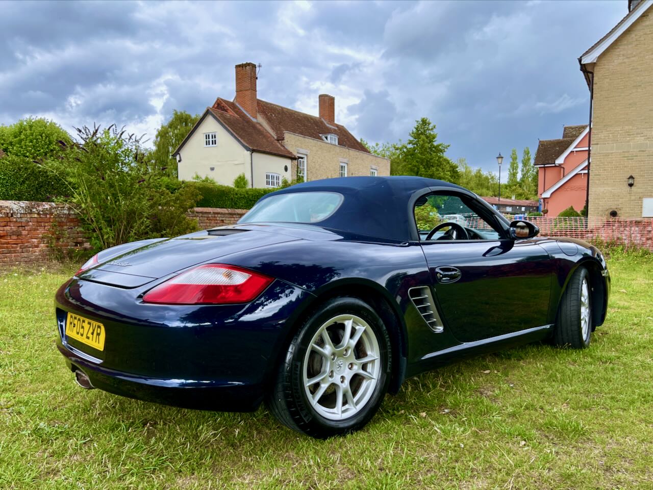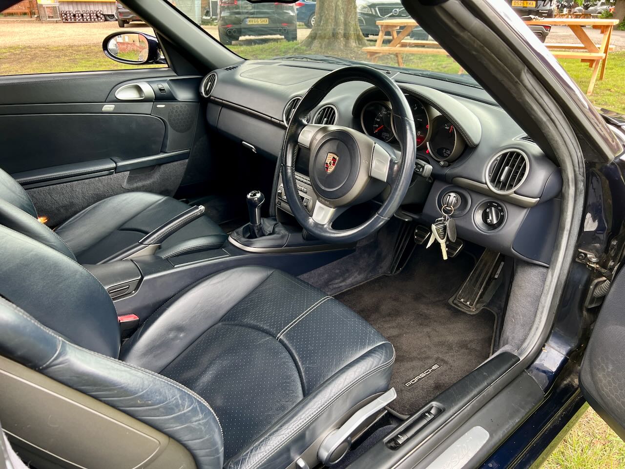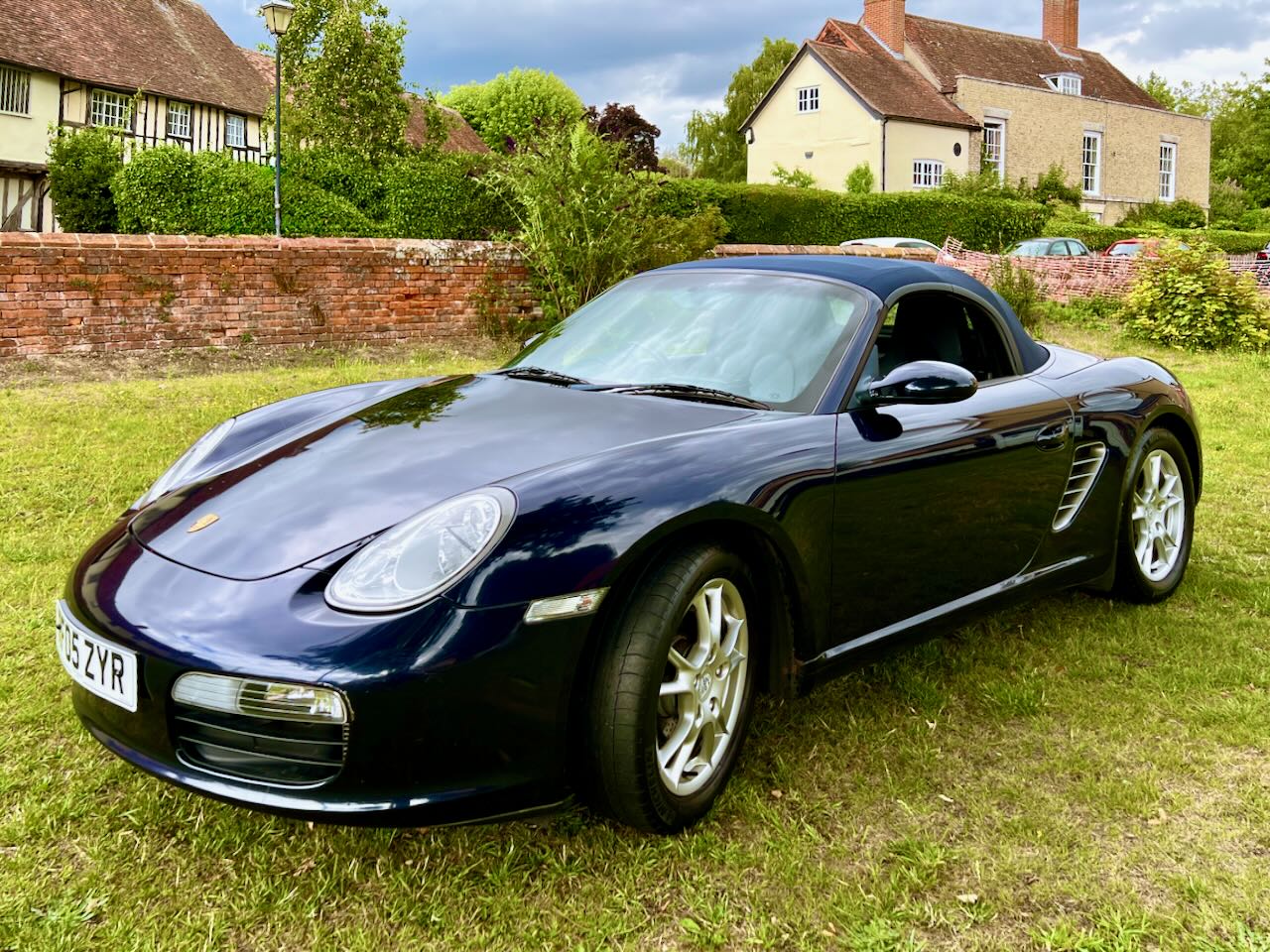 We have known this Porsche Boxster since 2016 having undertaken full yearly servicing and repairs for the previous owner who, in turn, has kept the car in near showroom condition. The paintwork is excellent, the two tone grey interior unmarked and the dark blue hood unstained.
