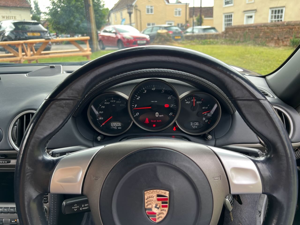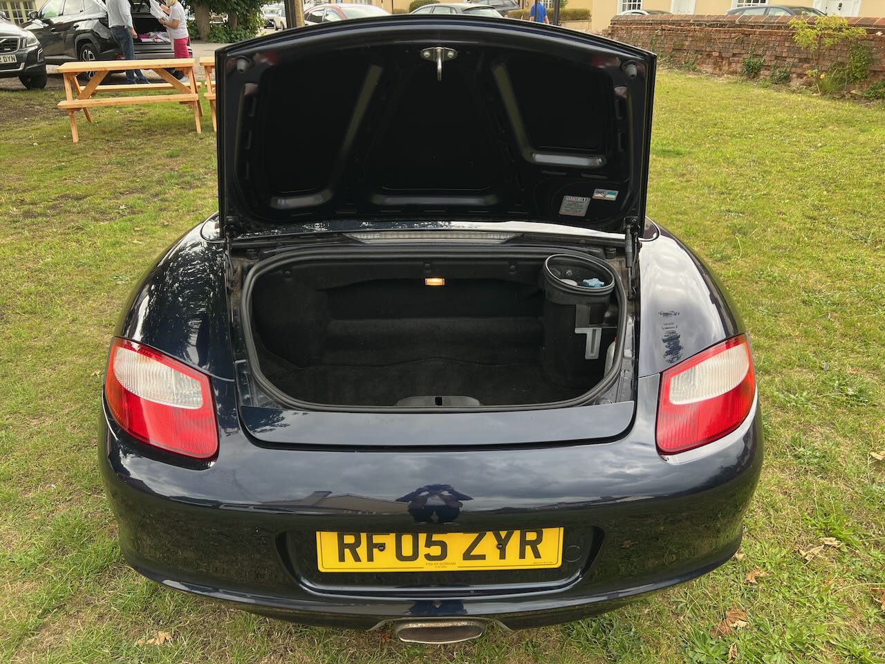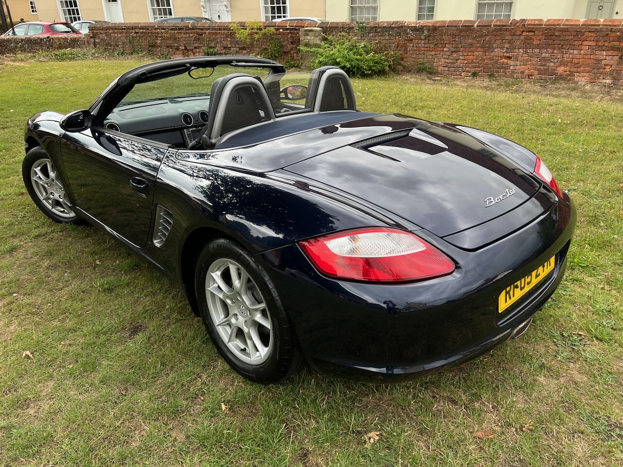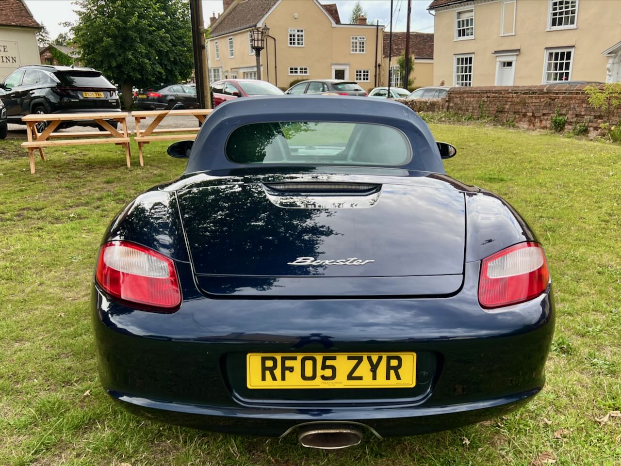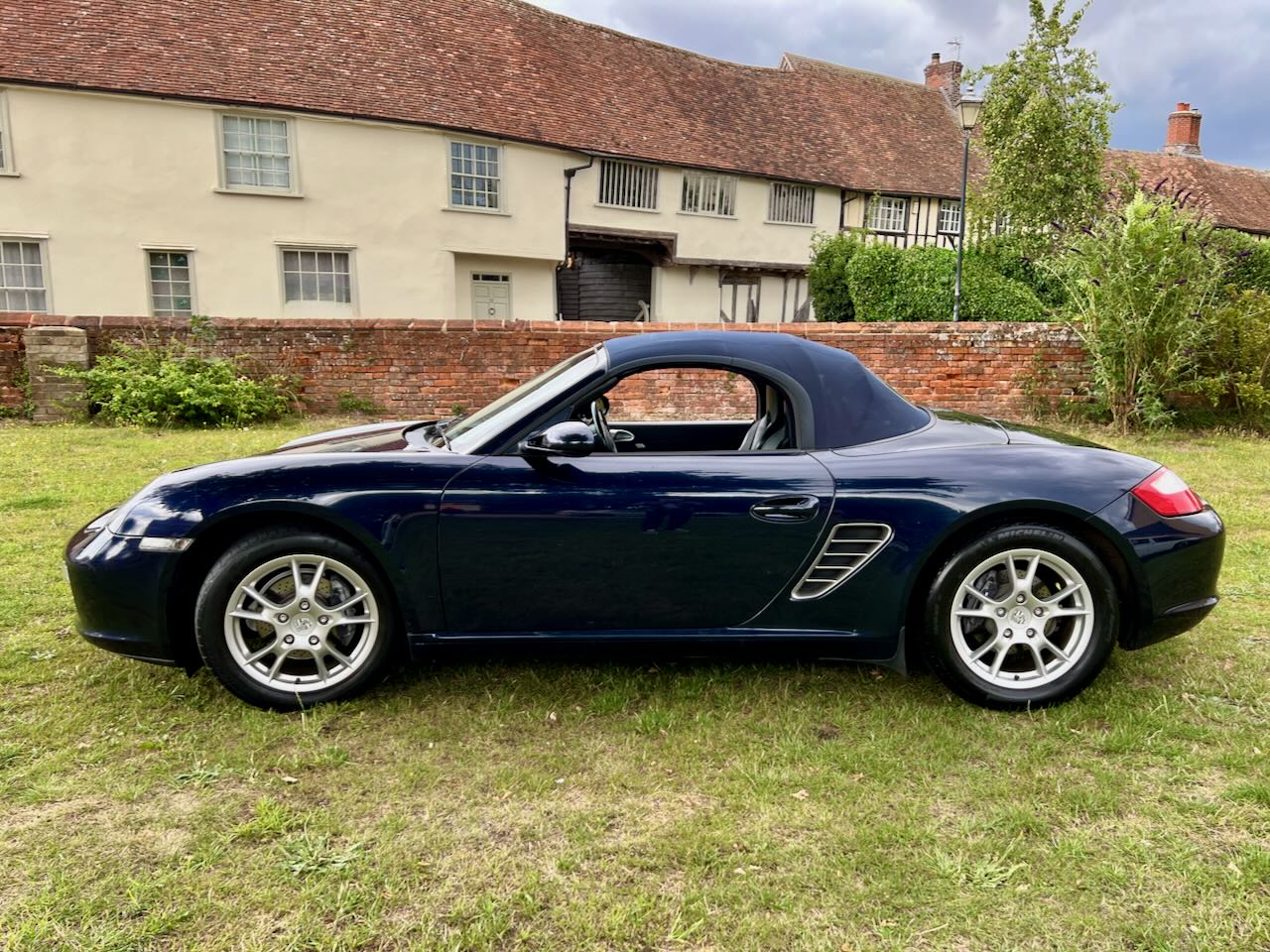 We have known this Porsche Boxster since 2016 having undertaken full yearly servicing and repairs for the previous owner who, in turn, has kept the car in near showroom condition. The paintwork is excellent, the two tone grey interior unmarked and the dark blue hood unstained.